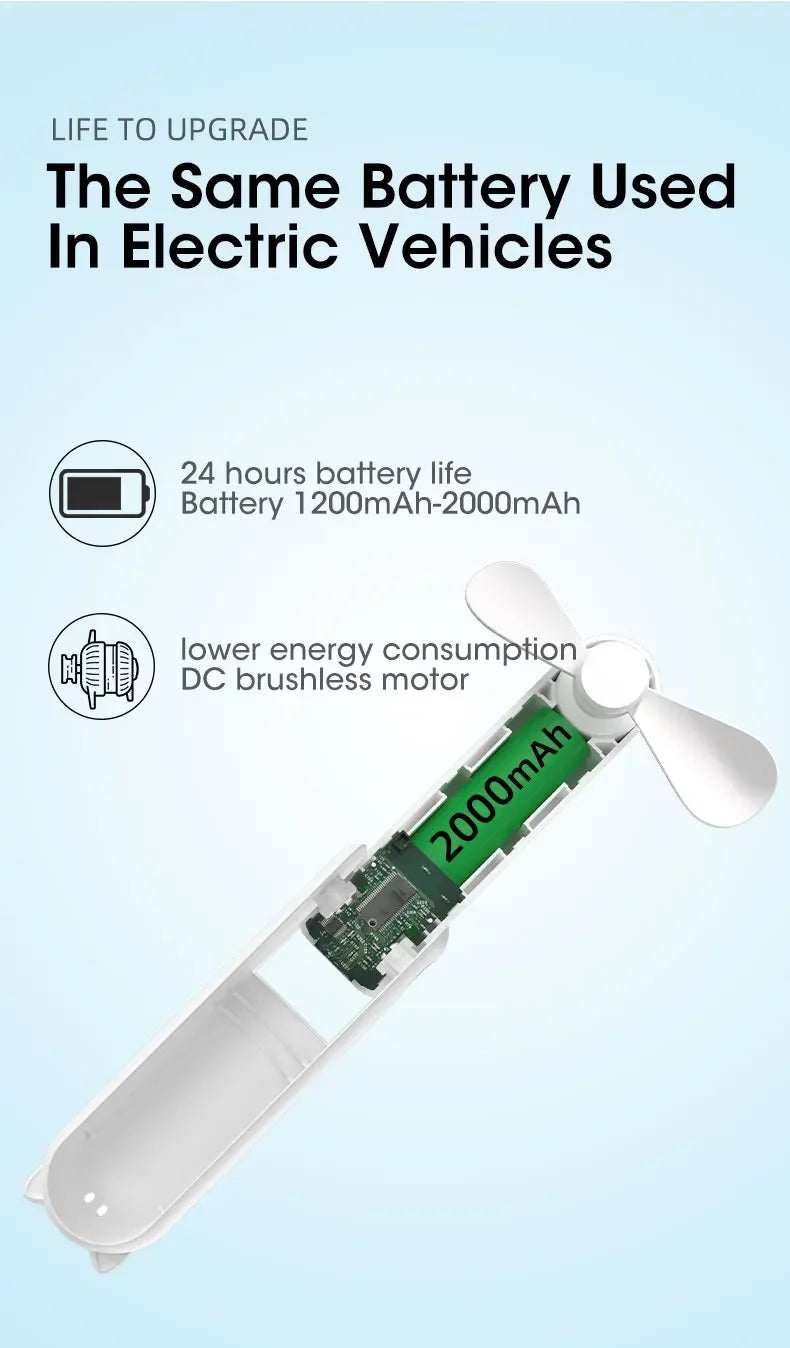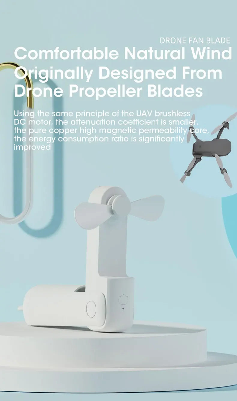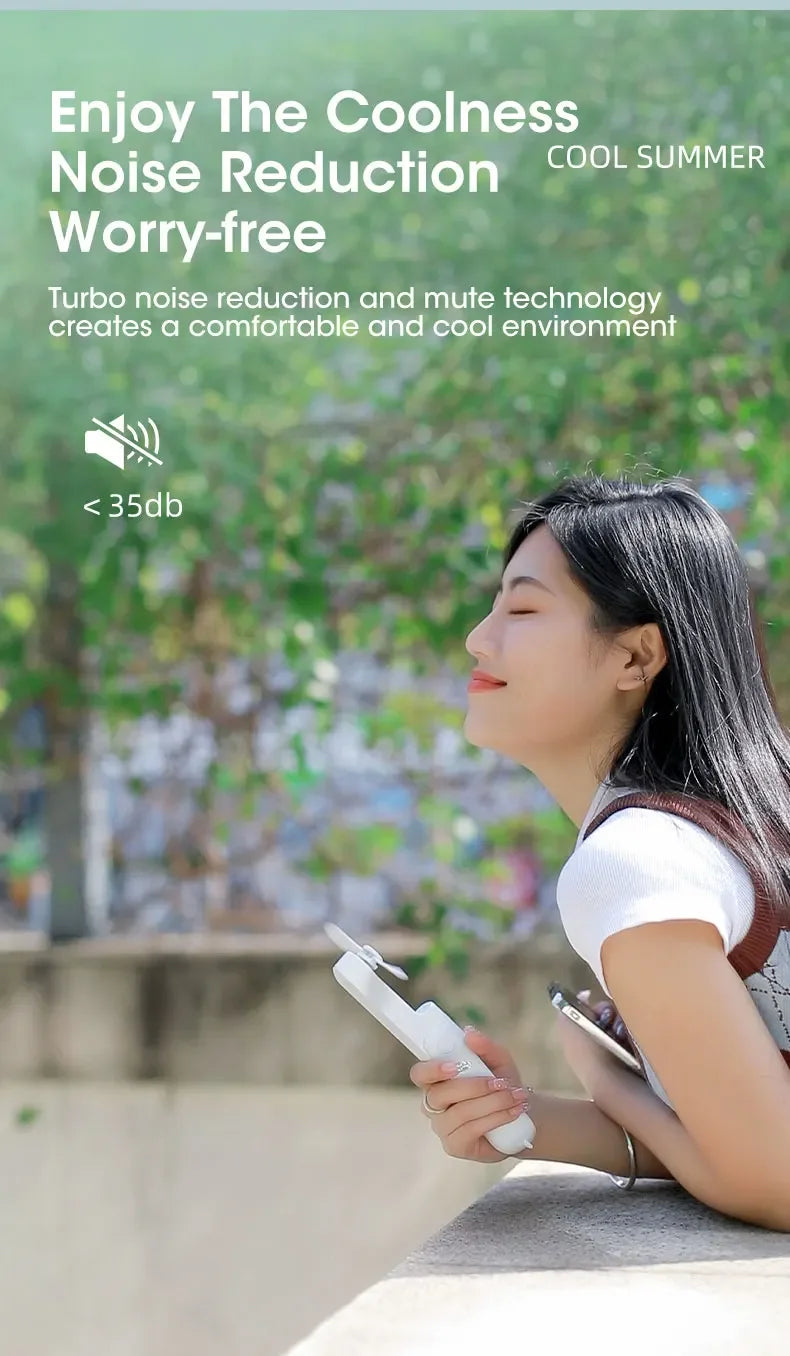 【Foldable Design and Mini Size】The folding design makes it easy to be carried and stored. Besides, with the capsule shape, this rechargeable fan can hide the fan blade, small and easy to slide into your pocket and purse.Gifts choice for Christmas & New year.