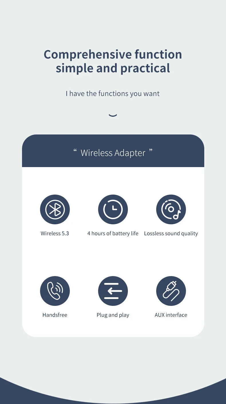 Features 1: Bluetooth 5.3 Wireless Audio Adapter